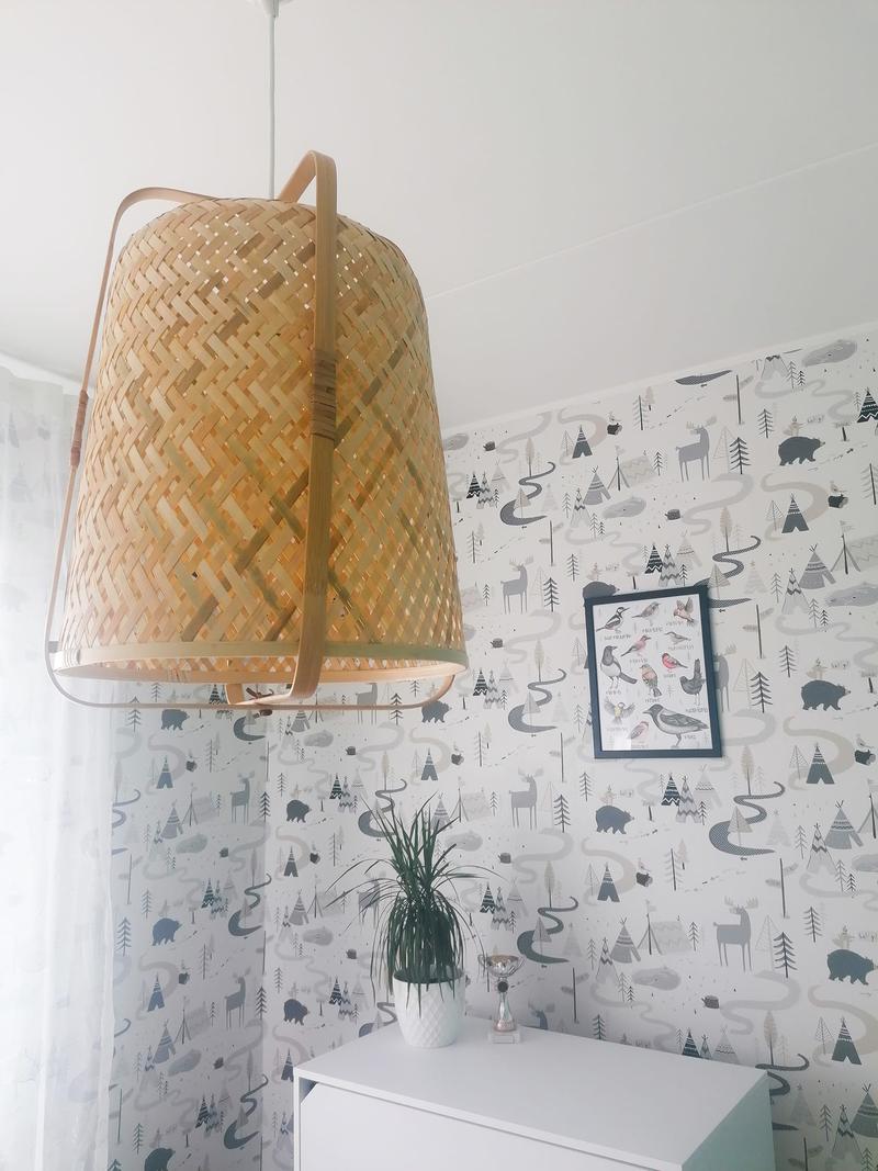 Järgmiseks pidin välja vahetama valgusti. Varasemalt oli meil laes Little Dutch valgusti, aga kuna ruumi toonid muutusid, ei sobinud see kahjuks enam meie tuppa. Ühe blogija (@homeinestonia) kontol jäi silma punutud valgusti ja ma kohe teadsin, et midagi sellist peab ka tulema siia. Valituks osutus KNIXHULT bambusest laelamp. Tootepiltidelt tundub kuidagi rohmakas, reaalselt nii stiilne ja ilus.