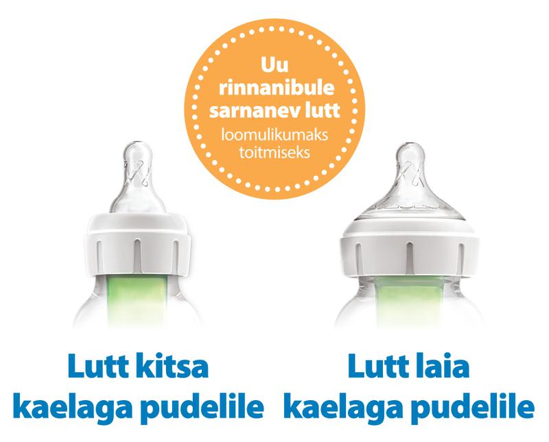 Dr. Brown’s Options+ laia kaelaga rinnakujuline lutt on loodud loomulikumaks toitmiseks. See jäljendab rinna loomulikku kuju, et beebil oleks lihtsam lutti haarata ja mugavalt süüa.